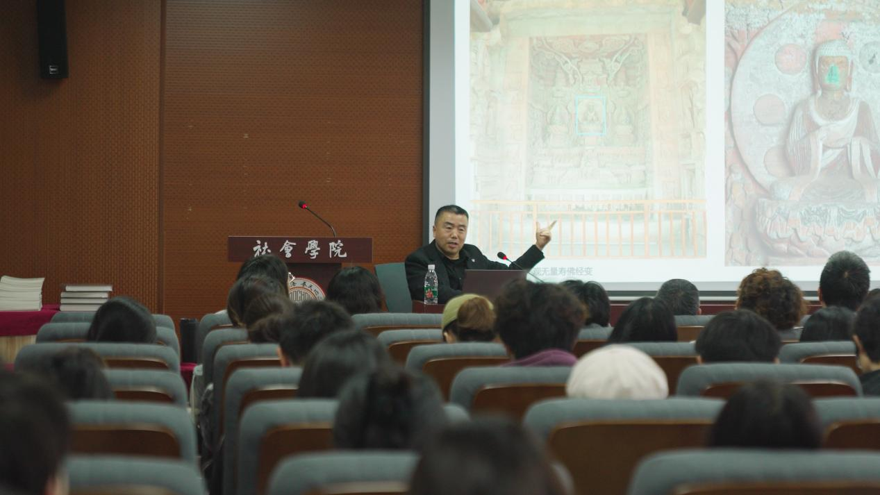 3月28日上午,大足石刻文化推介进高校专题讲座之“唐宋历史中的雕塑艺术——大足石刻图像谱系”走进苏州大学社会学院。活动现场座无虚席,百余名师生齐聚一堂,共同探寻大足石刻的艺术密码与历史价值。